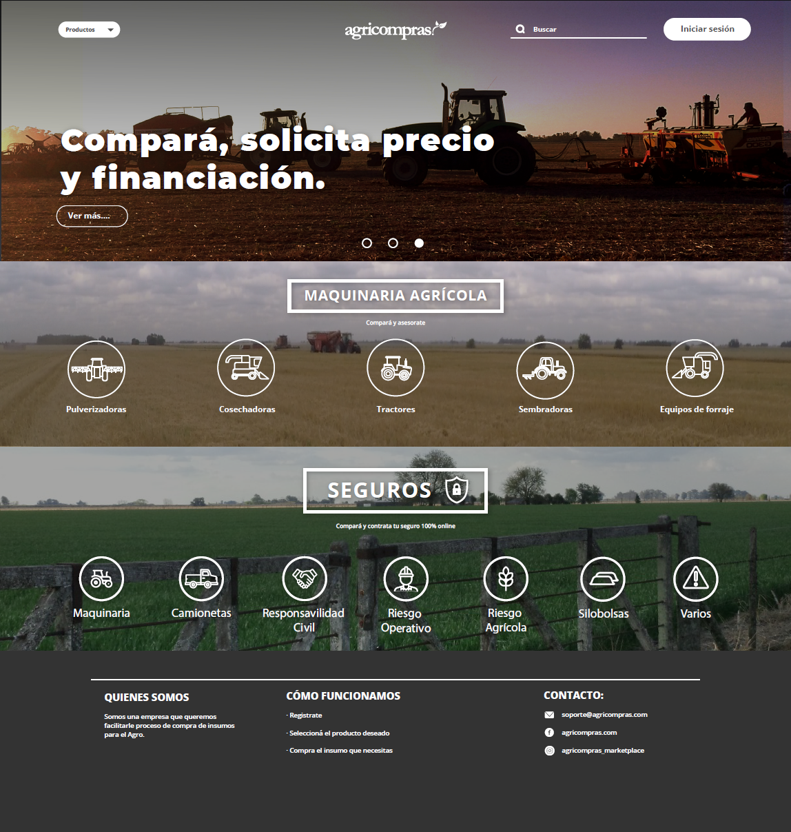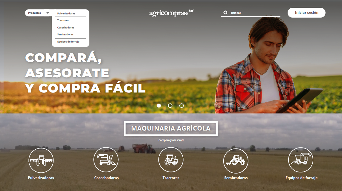 Este sitio web contiene todo tipo de productos pensados para el agro, desde maquinarias y semillas, hasta seguros y financiación para compra/leasing. En el mismo se pueden comparar productos para diferenciar características entre uno y otros. El cliente cuando realiza una solicitud sobre un determinado producto, existe una configuración de redes de concesionarios que reciben esa petición según localidad o cercanía, dependiendo de cómo esté configurada cada marca. Las concesionarias disponen de paneles back-office para esta gestión de consultas, con diversas gráficas y estadísticas.
