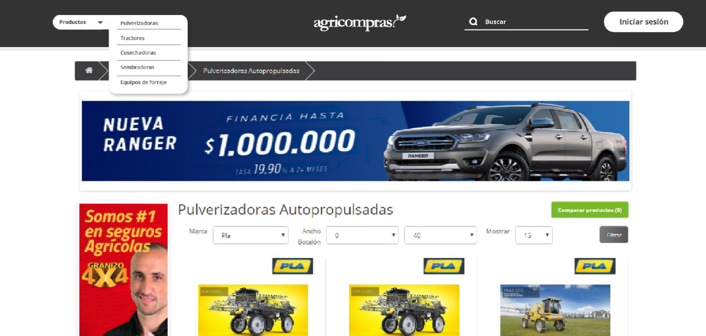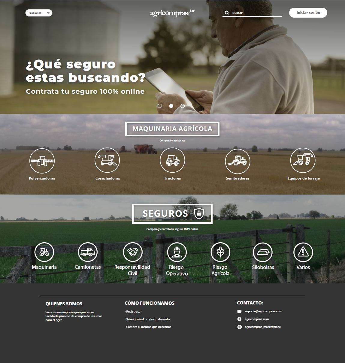 Este sitio web contiene todo tipo de productos pensados para el agro, desde maquinarias y semillas, hasta seguros y financiación para compra/leasing. En el mismo se pueden comparar productos para diferenciar características entre uno y otros. El cliente cuando realiza una solicitud sobre un determinado producto, existe una configuración de redes de concesionarios que reciben esa petición según localidad o cercanía, dependiendo de cómo esté configurada cada marca. Las concesionarias disponen de paneles back-office para esta gestión de consultas, con diversas gráficas y estadísticas.